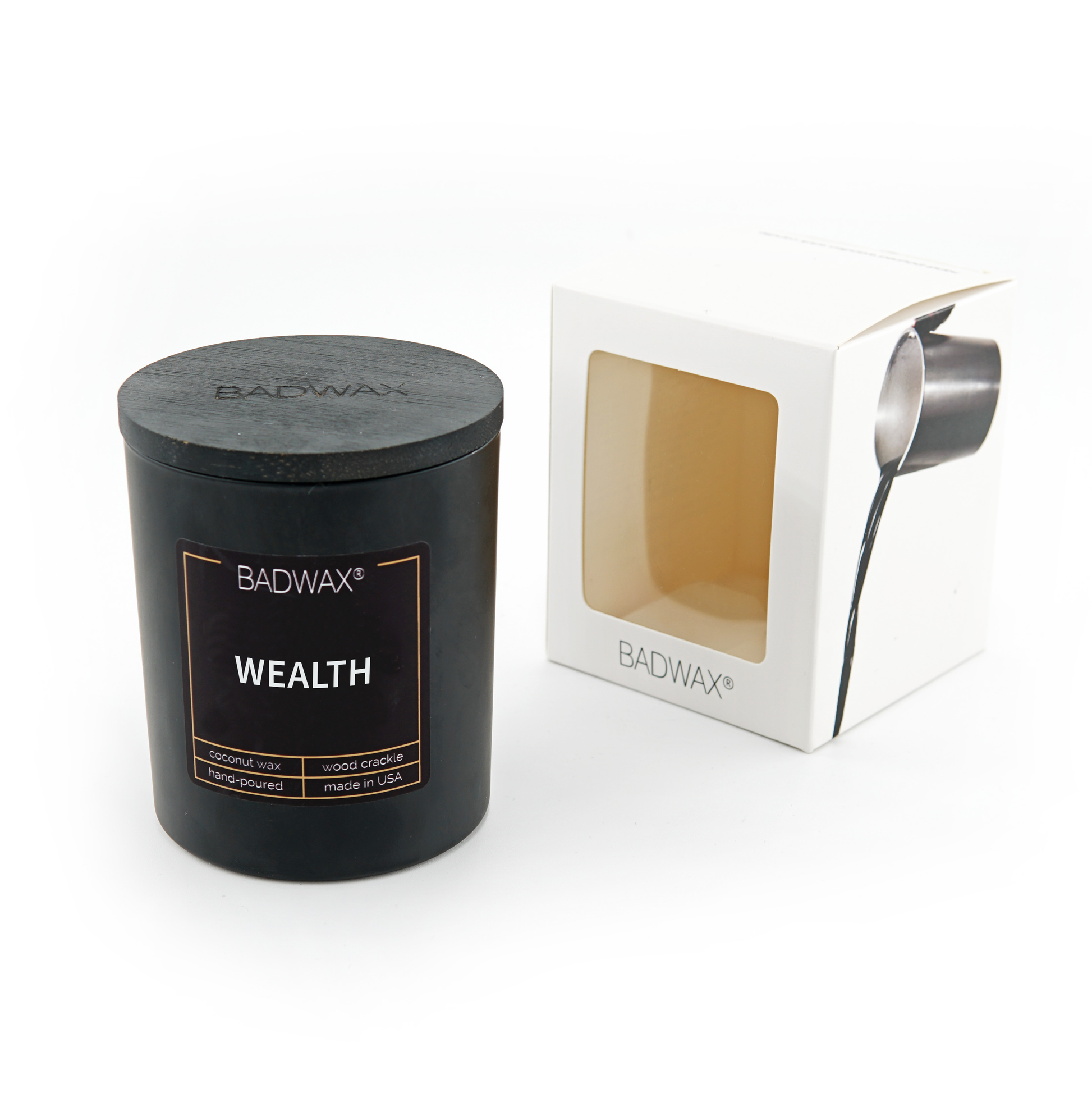 We use a premium soy wax blend that allows a nice slow burn with a fantastic scent throw. Even the small candles pack some serious scent.
